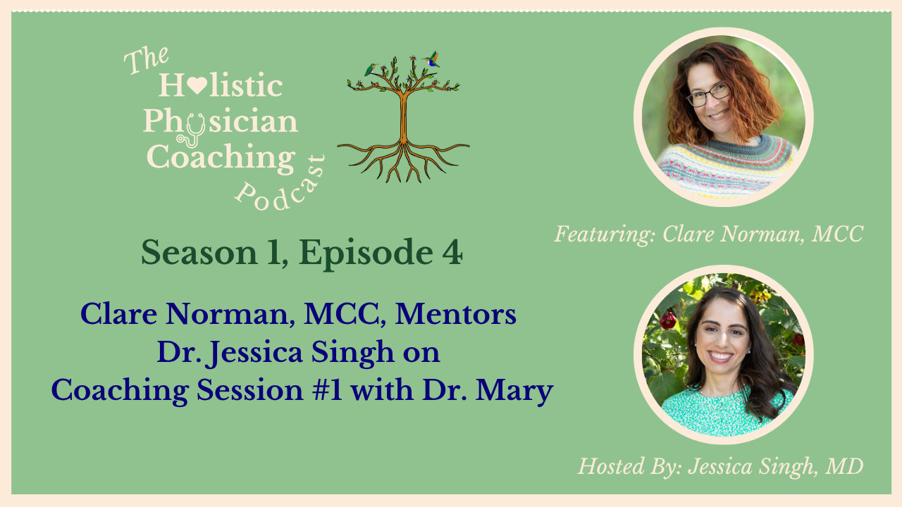 In this insightful episode of The Holistic Physician Coaching Podcast, Dr. Jessica Singh is mentored by Clare Norman, MCC, during her first coaching session with Dr. Mary, a family medicine physician navigating the transition to motherhood. Clare Norman, founder of Clare Norman Coaching Associates, is a Master Certified Coach with the International Coaching Federation, an author, mentor coach, and coach supervisor.