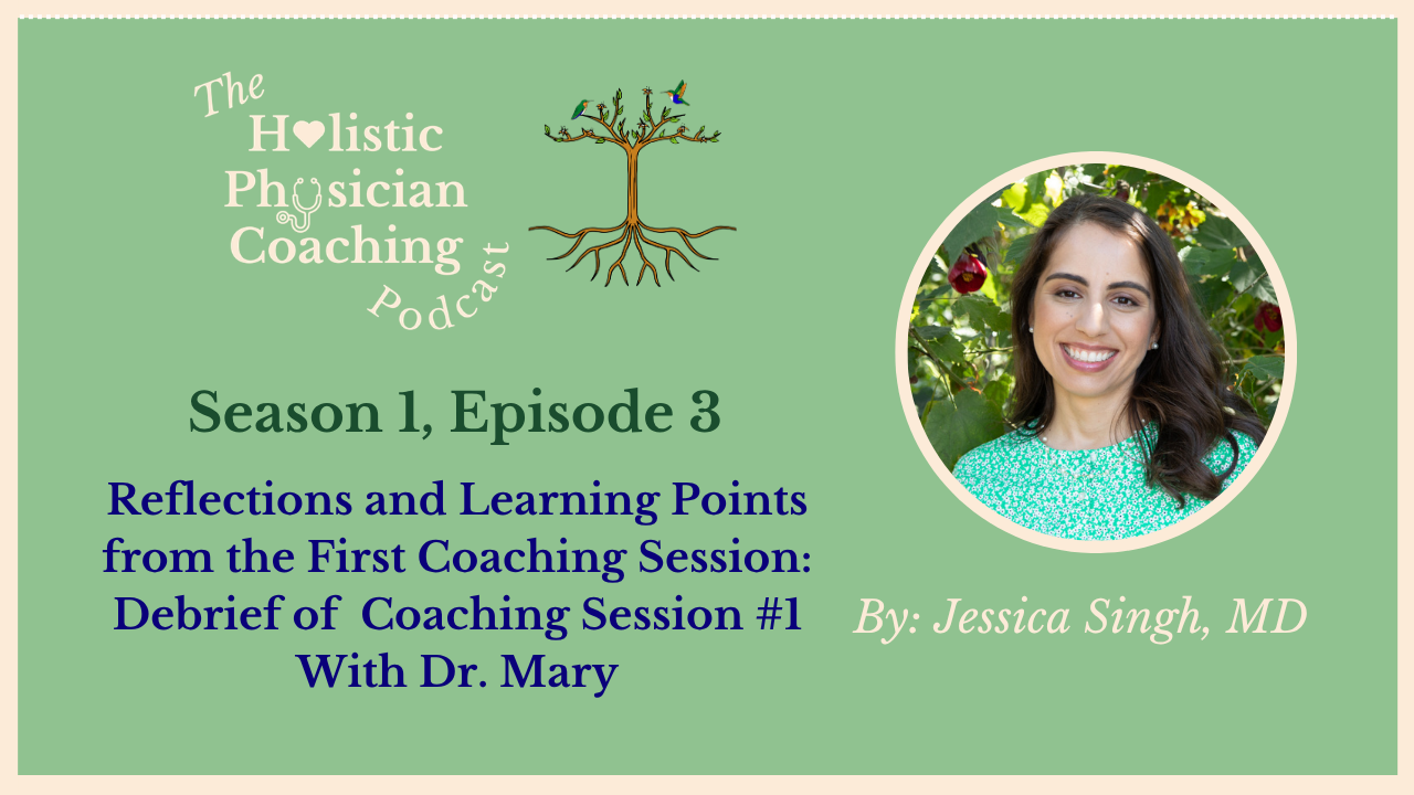In this debrief episode of The Holistic Physician Coaching Podcast, Dr. Jessica Singh reflects on her first coaching session with Dr. Mary. Dr. Mary is a family medicine intern in the United States who is navigating a major life transition as a first-time mother preparing to return to residency training after maternity leave.